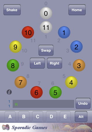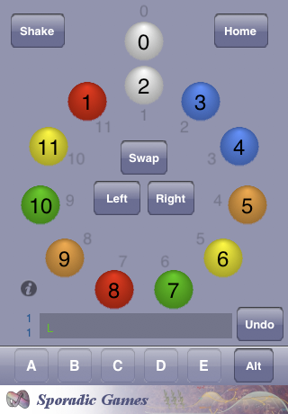 M12 will make a random puzzle for you to solve if you shake your iPhone or iPod, or if you hit the Shake button.